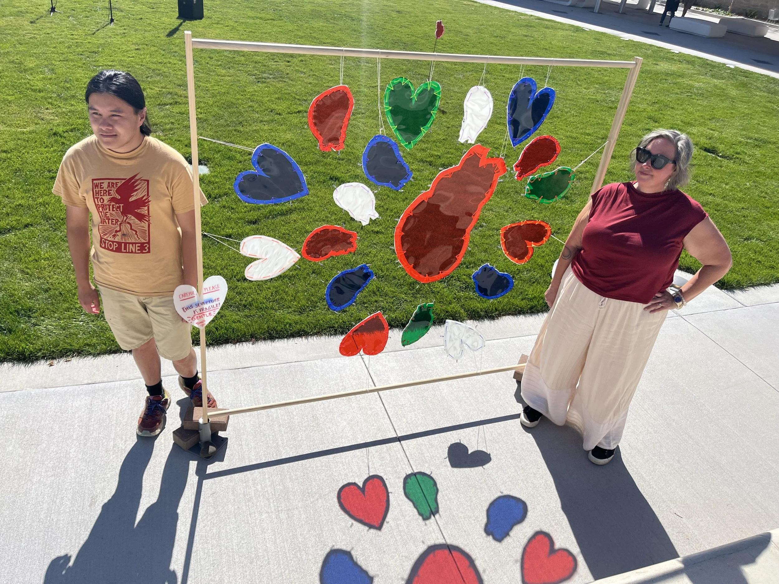 I am grateful for my partner who helped me so much with setting up my sculpture and the Love Stations and who placed the heart quotes like little treasures for people to find as they wandered all around the grounds. He also kept an eye on things, took photos and saved the sculpture from blowing over in the wind (!!!) even though it was anchored with bricks (!!!) several times.